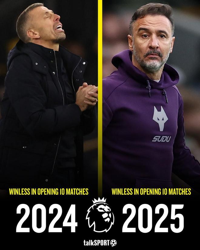 与此同时来自talkSPORT的统计指出,算上上赛季加里-奥尼尔执教期间球队英超前10轮3平7负的成绩,狼队也就此成为了英超联赛历史上第一支连续两个赛季开季前10轮都未尝胜绩的球队。